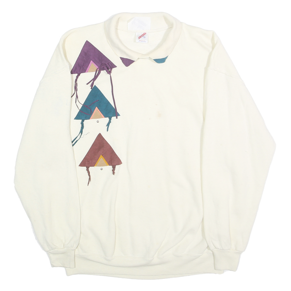 JERZEES Womens White & Multicolour Geometric Pullover Sweatshirt XL Collar