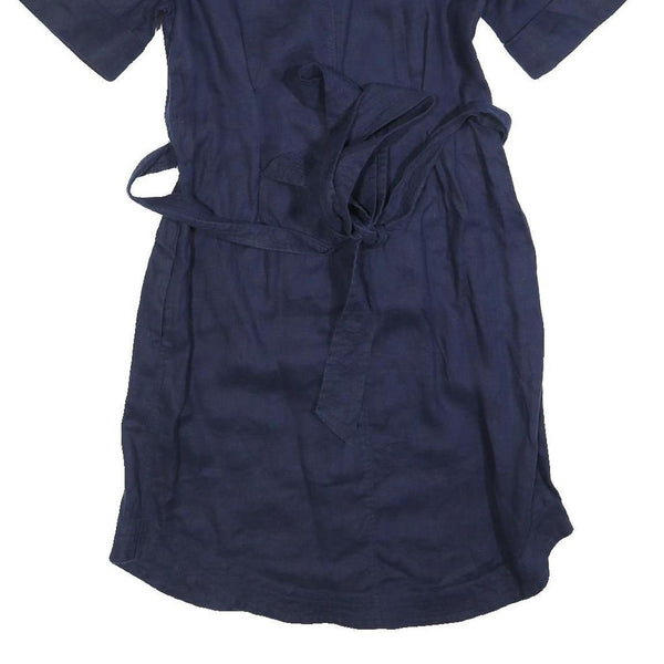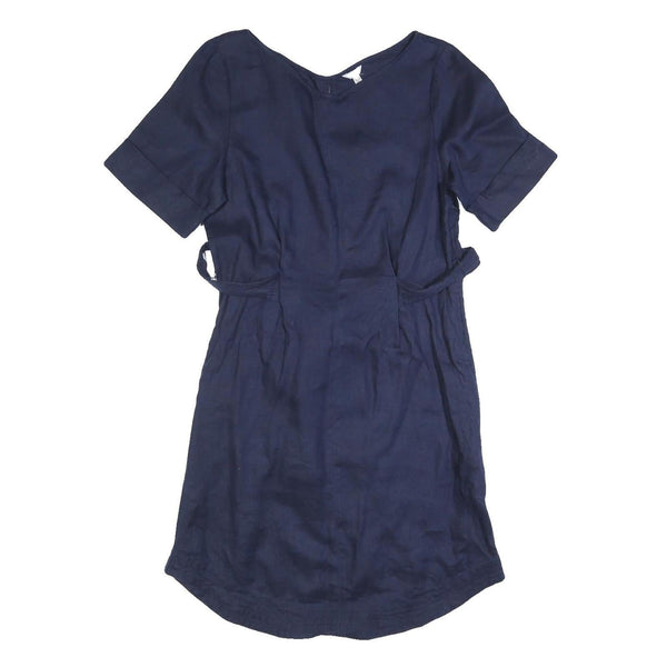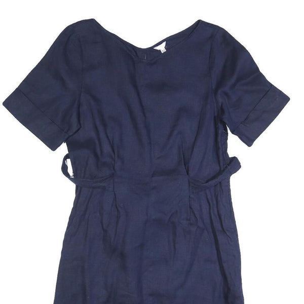 JIGSAW Womens Navy Linen Day Dress Short Sleeve UK 10 Belted Casual Summer Style