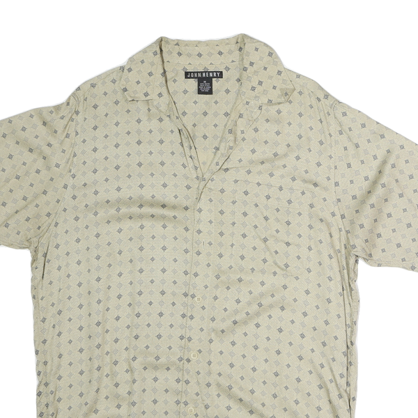 JOHN HENRY Mens Beige Pattern Shirt M Cotton Short Sleeve Casual Summer