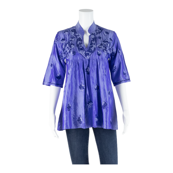 Home JOSHI Womens Printed Top Purple V-Neck 3/4 Sleeve Floral S