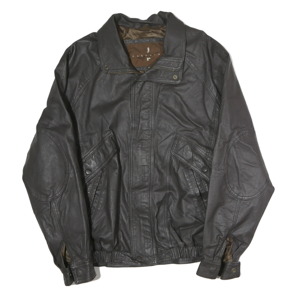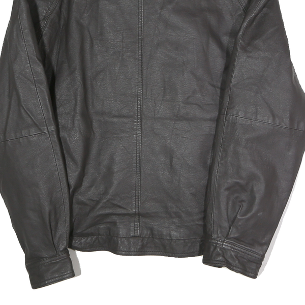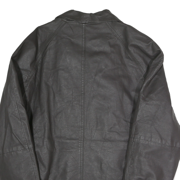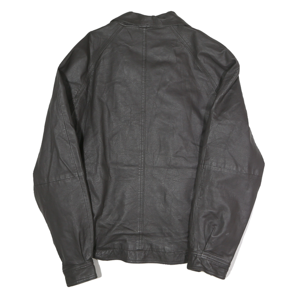 JOSHUOROS Mens Black Leather Zip Jacket M Classic Motorbike Style