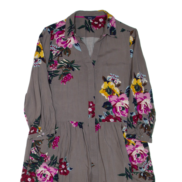 JOULES Womens Day Dress Grey Floral Long Sleeve Knee Length UK 12