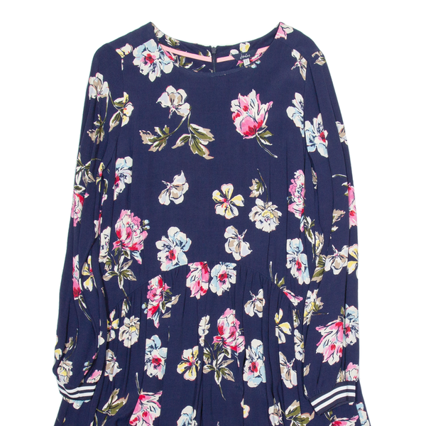 JOULES Womens Skater Dress Blue Viscose Floral Long Sleeve Knee Length UK 10