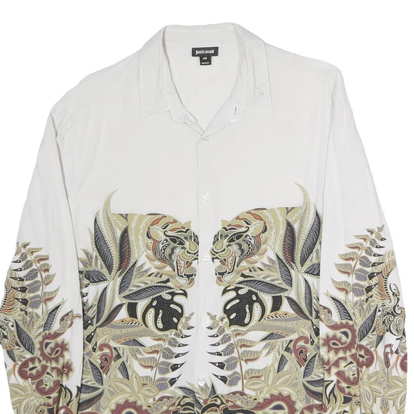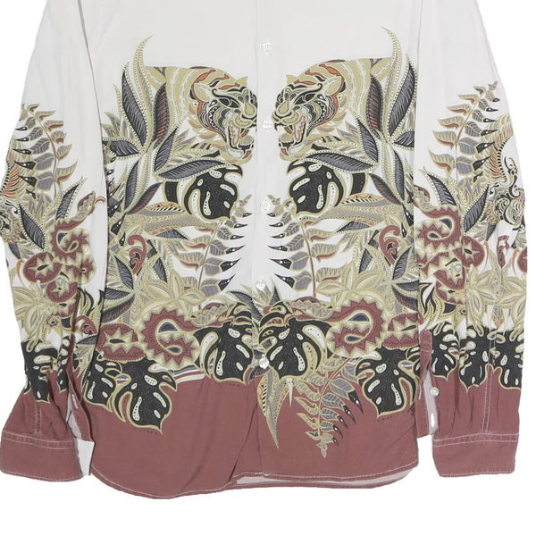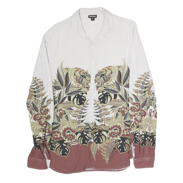 JUSTCAVALLI Mens White & Brown Floral Print Shirt M Stylish Designer Casual Wear