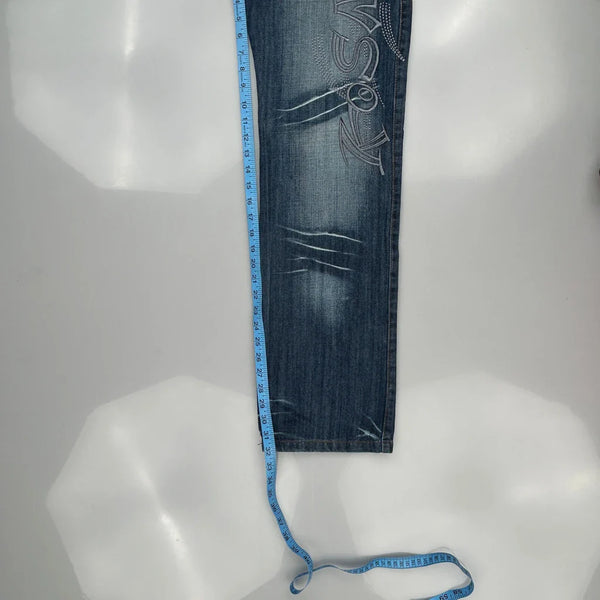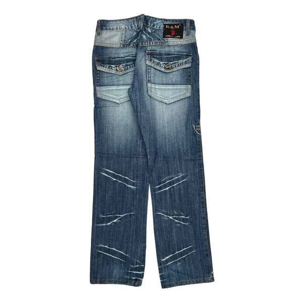 K & M Jeans, fit a 32″ Waist and 31″ inseam.