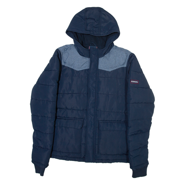 KANGOL Mens Puffer Jacket Blue Hooded S