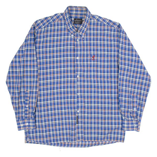 KANGOL Mens Shirt Blue 90s Check Long Sleeve XL