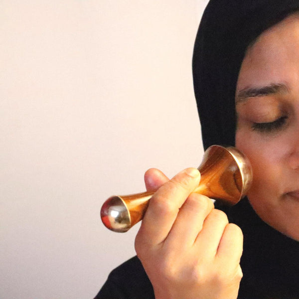 Gently massage your skin using the wand, applying light pressure and circular motions. Start from the centre of the face and move outward. This promotes lymphatic drainage and stimulates the skin's natural detoxification process. Remember to use the larger tip for broader areas and the smaller tip for delicate areas like under the eyes. Enjoy the rejuvenating effects of this ancient Ayurvedic practice and let your skin glow with vitality