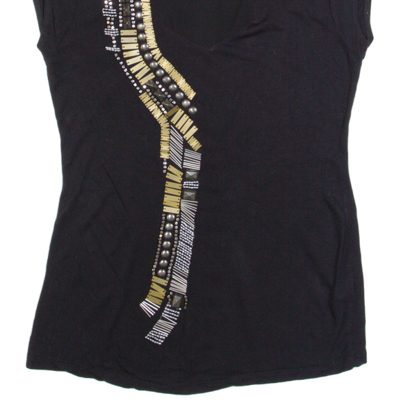 KAREN MILLEN Beaded Womens Top Black UK 10