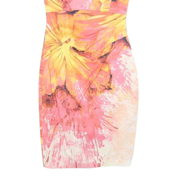 KAREN MILLEN Womens Pink & Yellow Floral Bodycon Polyester Dress UK 10