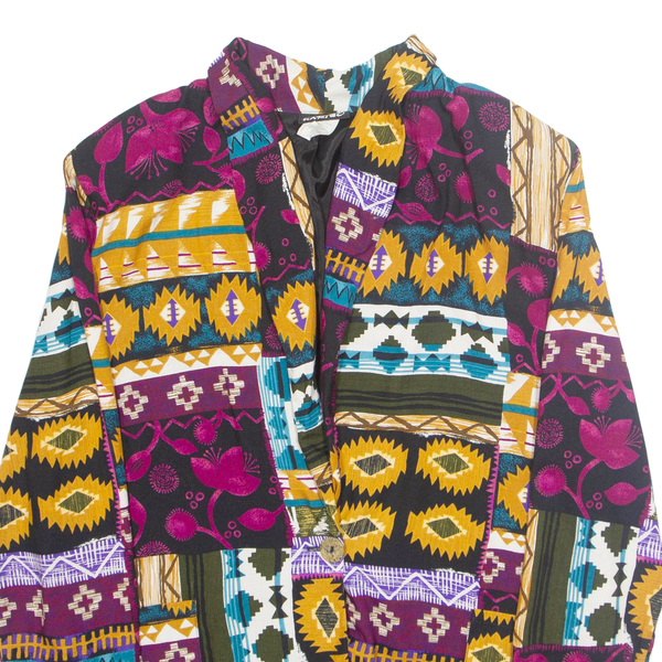 KARIBO Womens Blazer Jacket Purple Crazy Pattern L