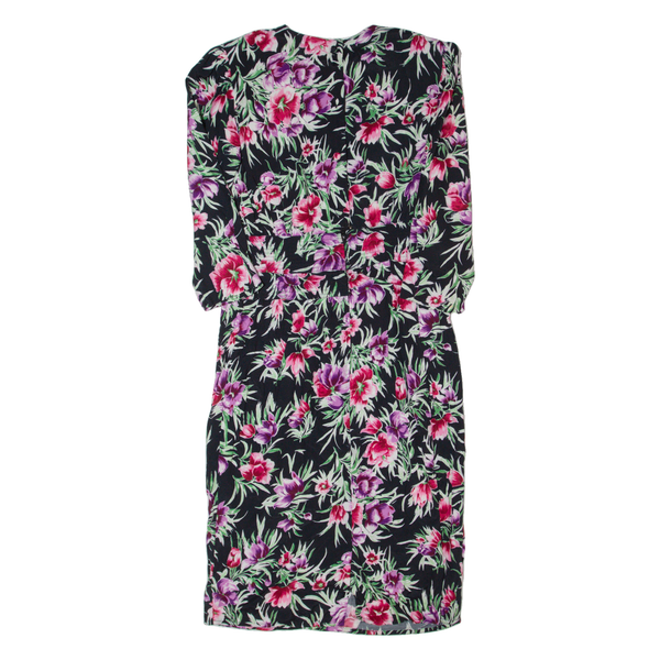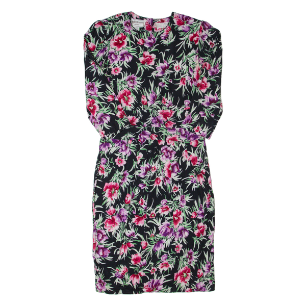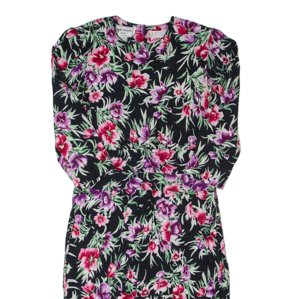 KARIN STEVENS Petite Womens Pencil Dress Black 90s Floral Midi S