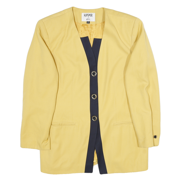 KASPER Womens Yellow & Navy Button Jacket UK 14 Cotton Blend Plain Elegant
