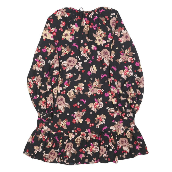 KATE SPADE Womens Black Floral Day Polyester Blend Mini Dress XS Tie Neck