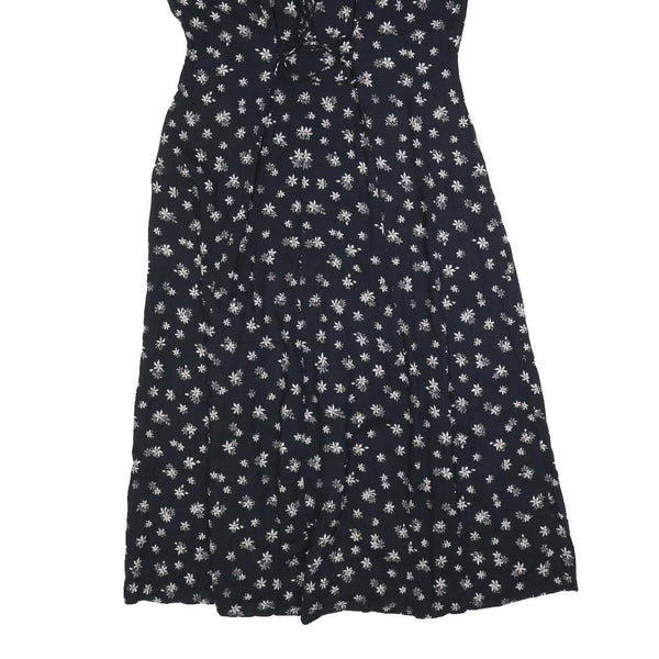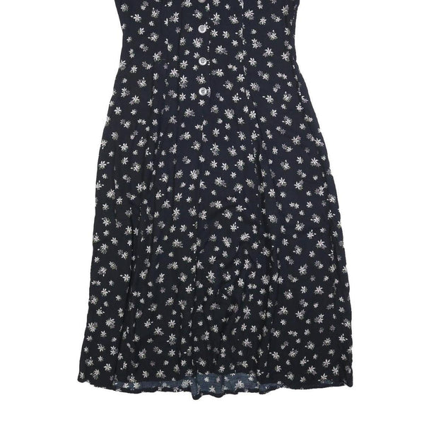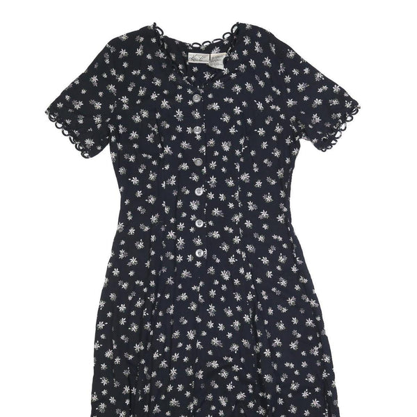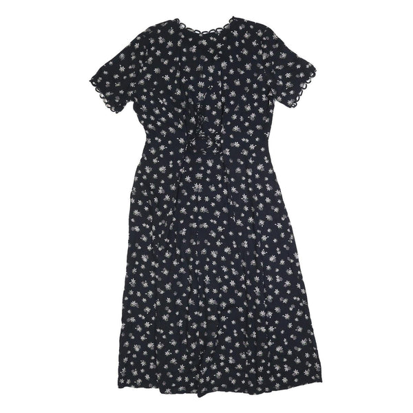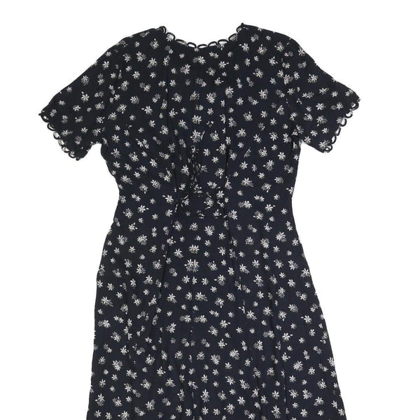 KATHIE LEO Womens Black Floral Cotton Blend Day Dress Midi M Button Front