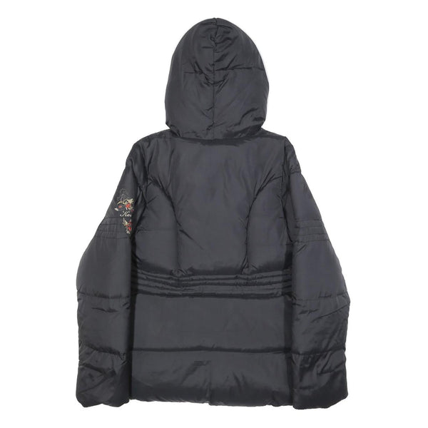 KENZO Girls Black Hooded Zip Jacket S Polyamide Plain Winter Coat Warm