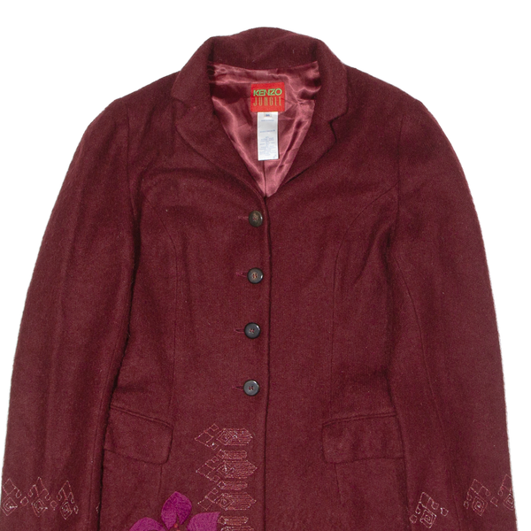 KENZO Womens Overcoat Coat Maroon Wool Floral UK 8