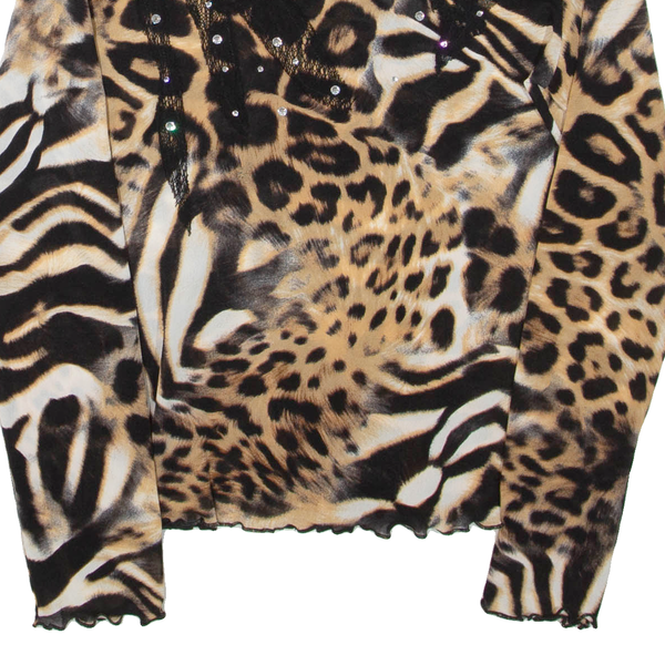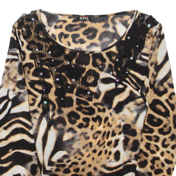 Home KFG Womens Printed Top Brown Long Sleeve Animal Print M