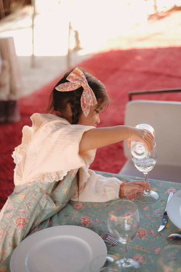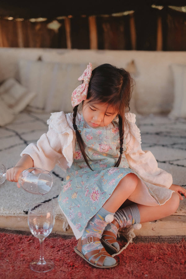 How much fun is cooking together or doing arts and crafts? We know how to make it more fun and less messy! Our organic cotton kid's apron is easy to wear with an adjustable drawstring at the neck and waist and easy to wash with a big front pocket and beautiful print. A gift idea to pair with the matching women's apron ( we love twinning fashion!). Louise Misha designed a kid's apron with a beautiful bohemian touch.