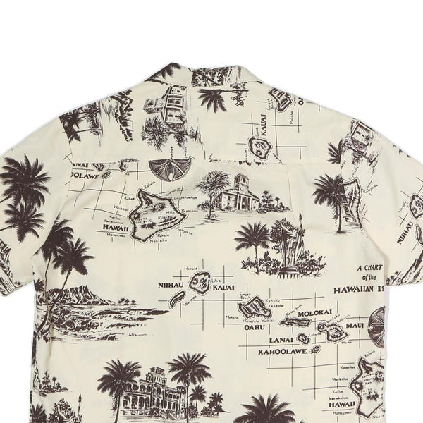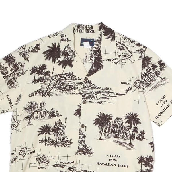 KING KALAKUA Mens Cream Hawaiian Isles Print Cotton Shirt M Short Sleeve Relaxed