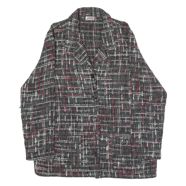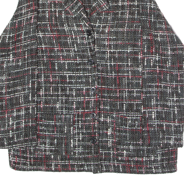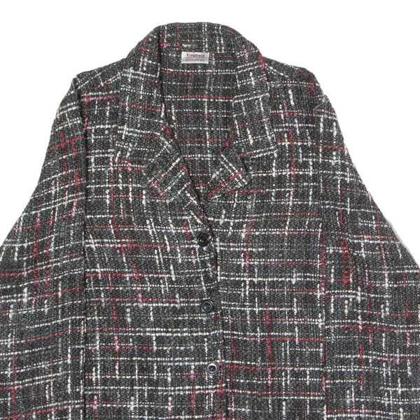 KINGFIELD Womens Blazer Jacket Black Knit Wool 90s Check UK 16