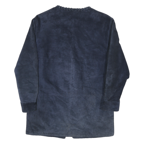 Kippie womens blue leather button jacket uk 10 plain long sleeve classic