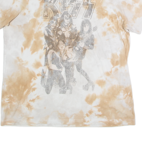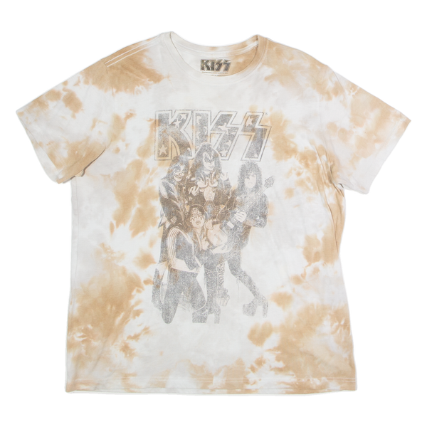 KISS Tie Dye Mens T-Shirt Brown Button Neck L