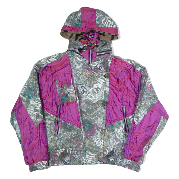 KITEX Womens Puffer Coat Purple 90s Crazy Pattern UK 18