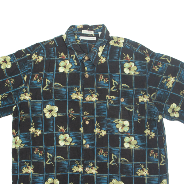 KNIGHTSBRIDGE Mens Hawaiian Shirt Black Floral XL