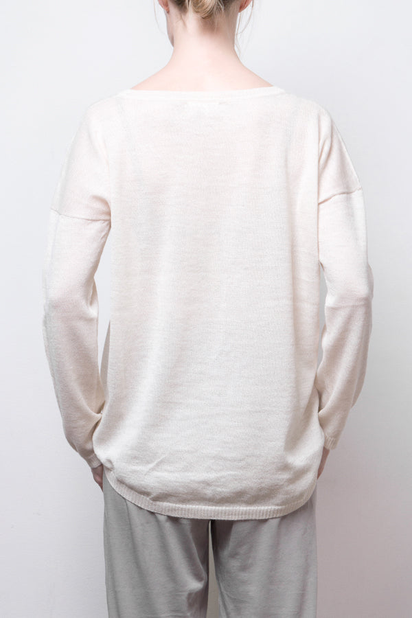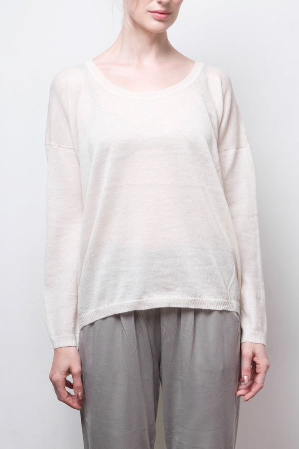 Kory Cash-Llama-Silk Sheer Pullover — Cream