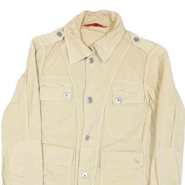 L.J Womens Beige Button Cotton Blend Jacket S Casual Classic Cotton Blend