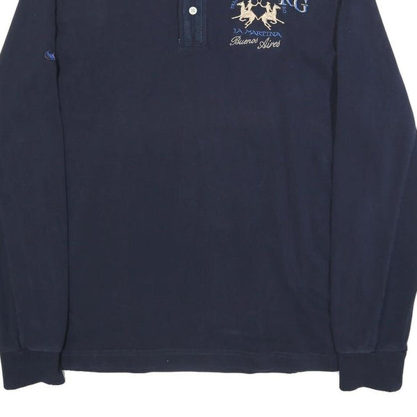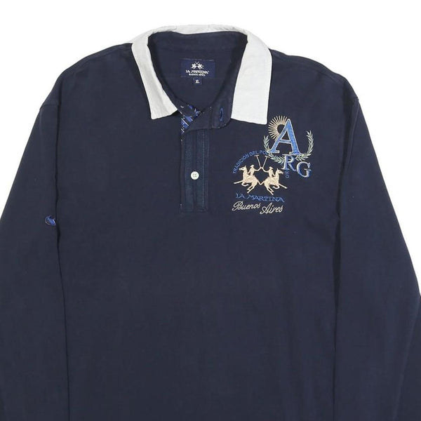LA MARTINA Mens Navy Blue Polo Shirt XL Cotton Blend Long Sleeve Embroidered ARG