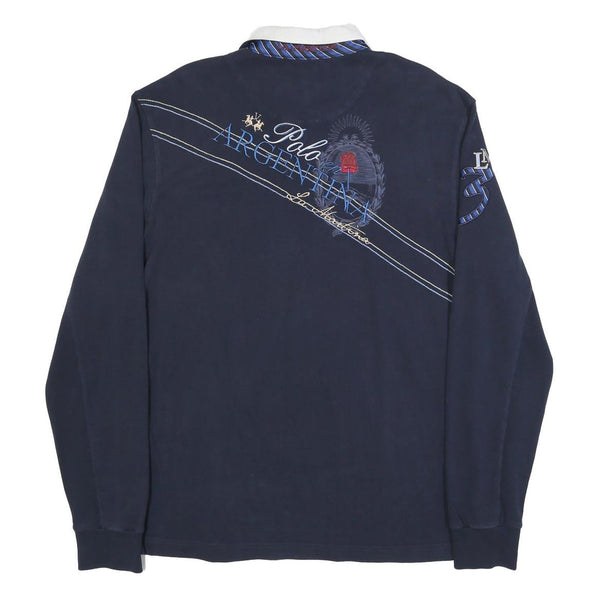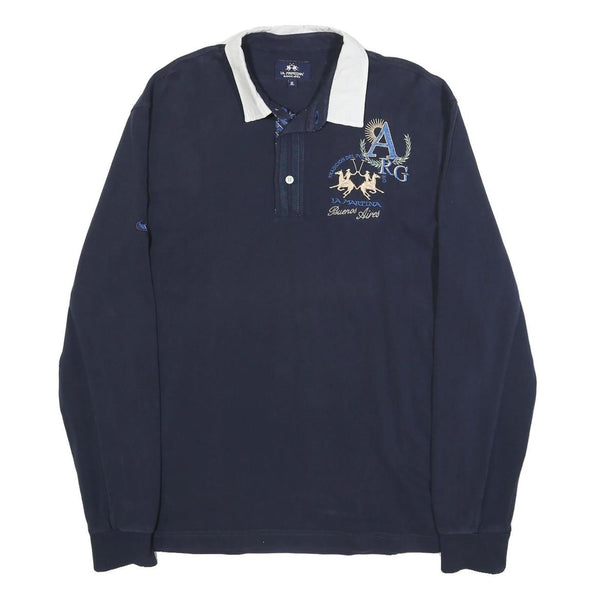 La martina mens navy blue polo shirt xl cotton blend long sleeve embroidered arg