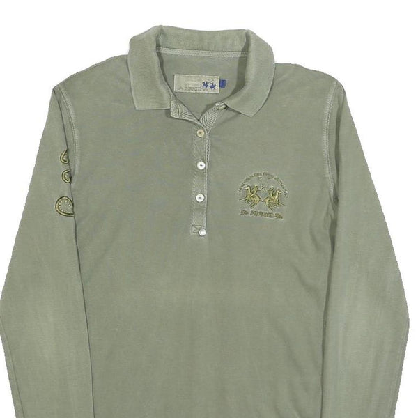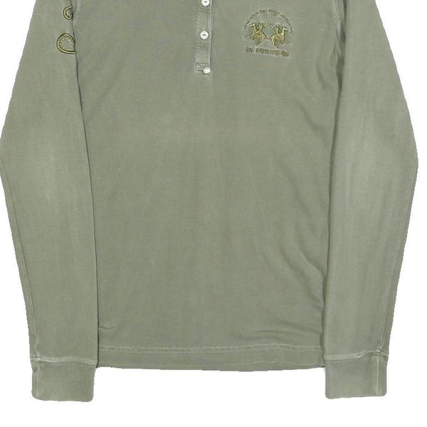 LA MARTINA Womens Green Long Sleeve Plain Polo Shirt XS Cotton Blend