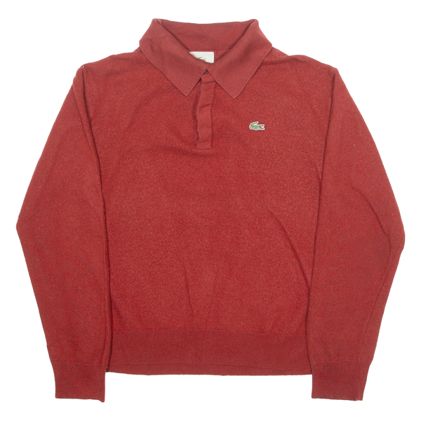 LACOSTE Mens Jumper Orange Collared Tight Knit XS