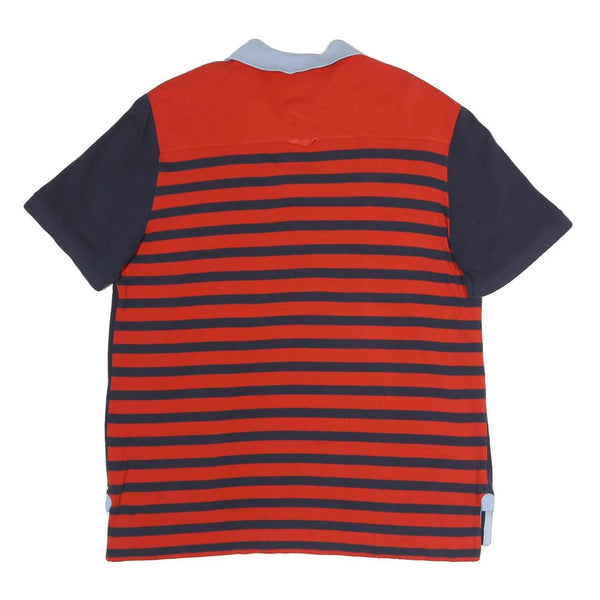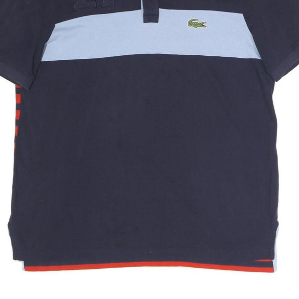 LACOSTE Mens Navy & Red Striped Cotton Blend Short Sleeve Polo Shirt XL 27 Patch