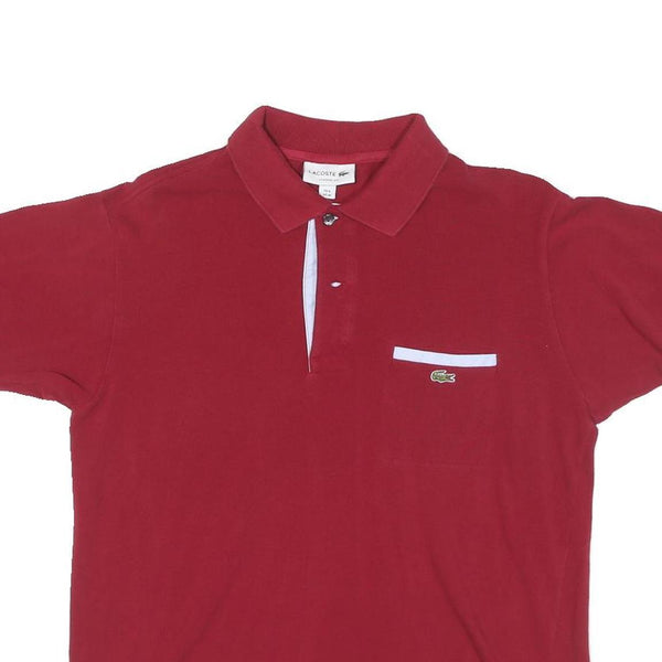 LACOSTE Mens Red Cotton Blend Pocket Short Sleeve Polo Shirt M Classic Style