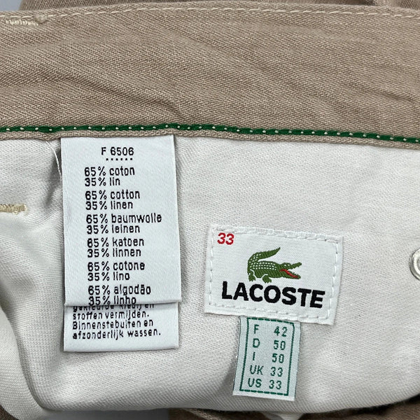Lacoste Beige Trousers, Size 33, 65% Cotton, 35% Linen.