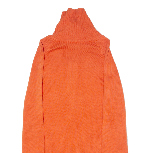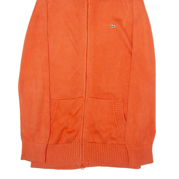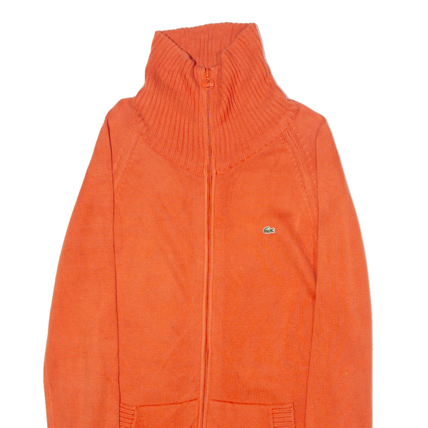 LACOSTE Womens Cardigan Orange Roll Neck Tight Knit M