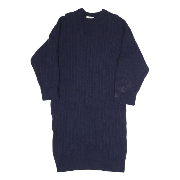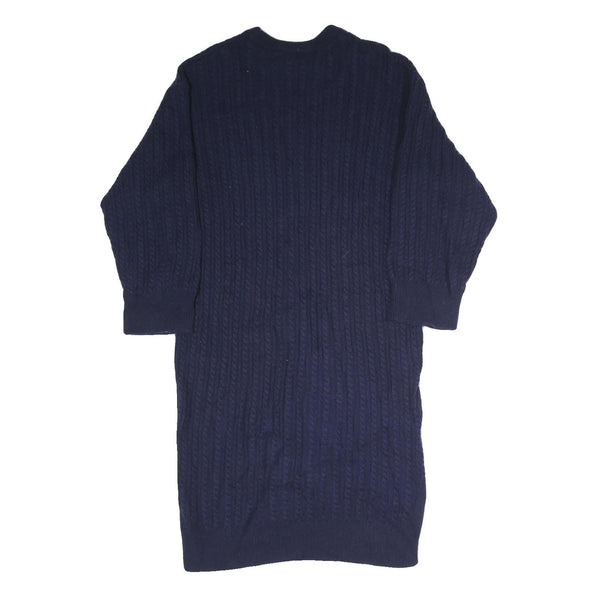 LACOSTE Womens Navy Blue Cotton Blend Cable Knit Midi Dress Long Sleeve L