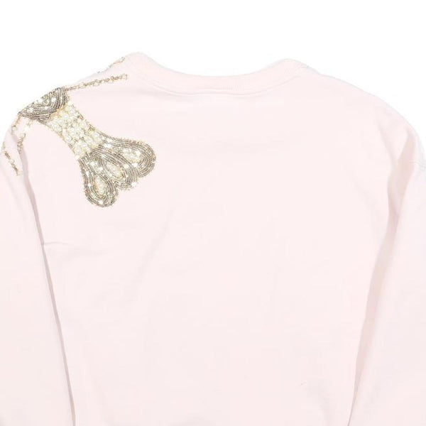 LAINES LONDON Womens Cream Embellished Crew Neck S Cotton Blend Sweatshirt