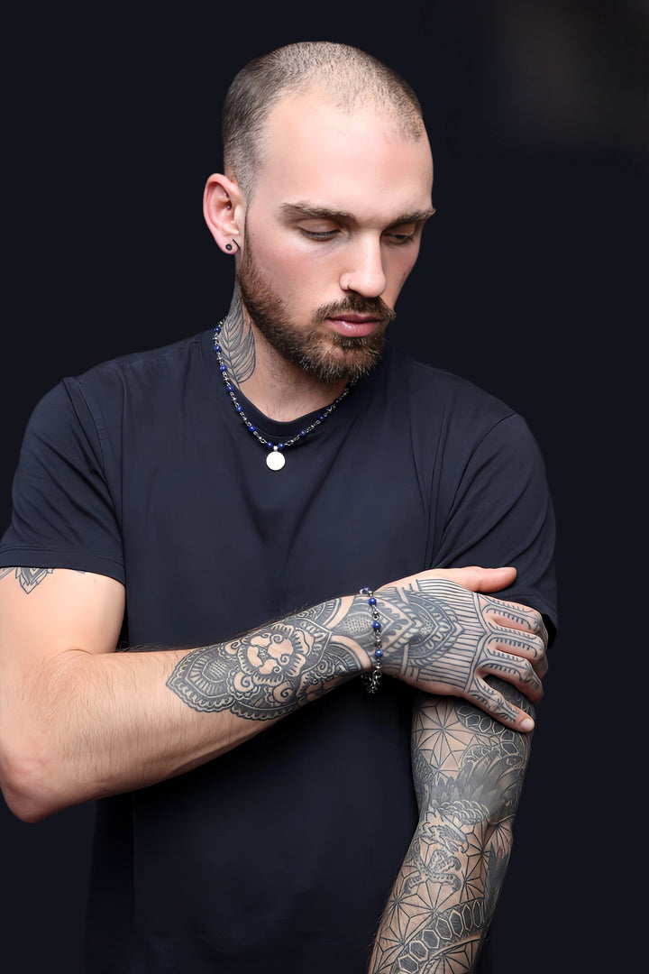 Crafted from linked Lapis Lazuli gemstones gemstones and featuring a silver loop and plated coin pendant, this unisex style is as versatile as it is beautiful. Wear it on its own for a sophisticated touch, or layer it with one of our chain necklaces for a look that's uniquely your own.