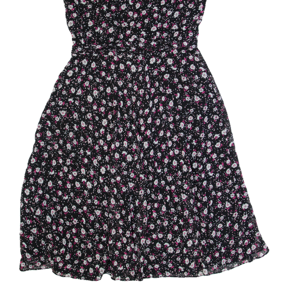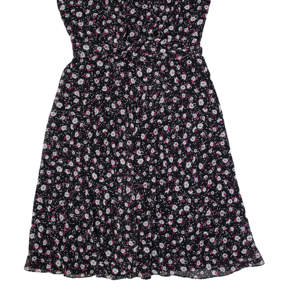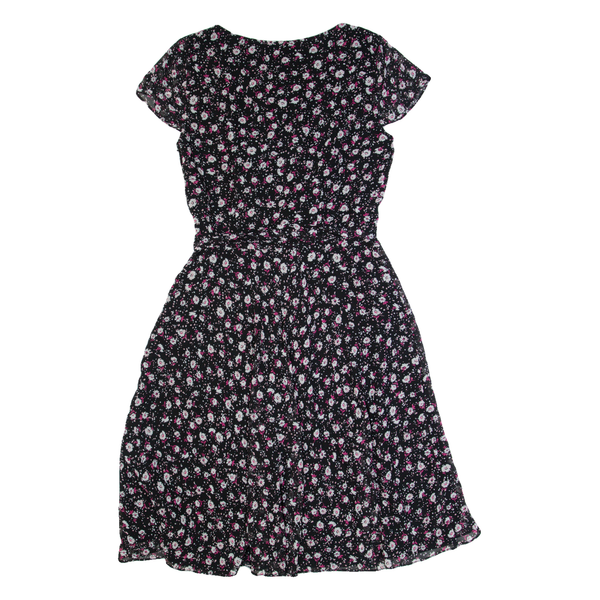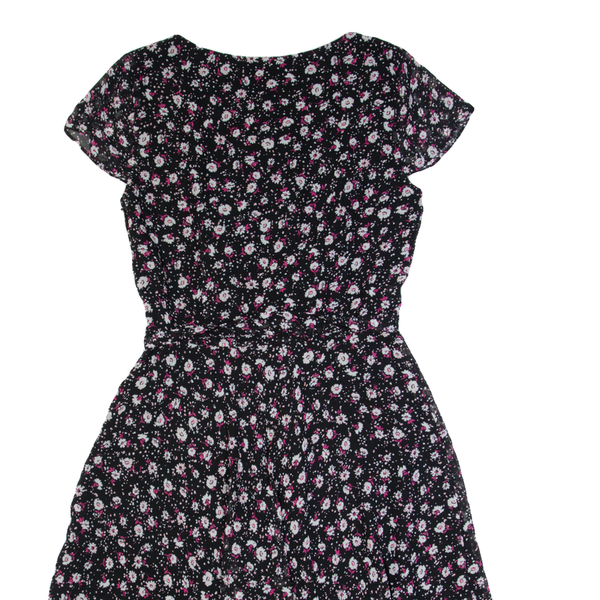 LAURA ASHLEY Womens A-Line Dress Black Floral Short Sleeve Knee Length UK 8