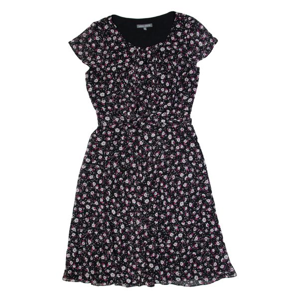 Laura ashley womens a-line dress black floral short sleeve knee length uk 8