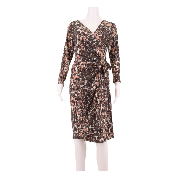 Laura ashley womens bodycon dress brown viscose animal print midi uk 10