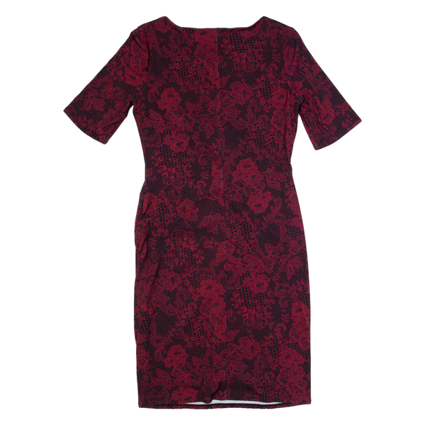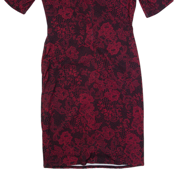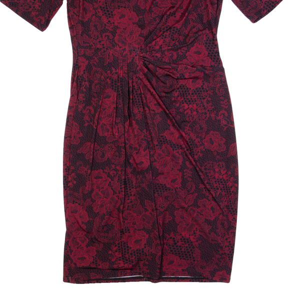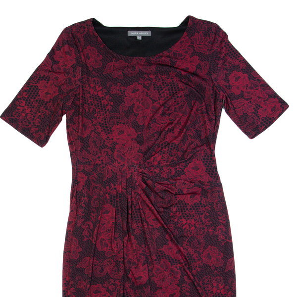 LAURA ASHLEY Womens Bodycon Dress Red Floral Short Sleeve Knee Length UK 10