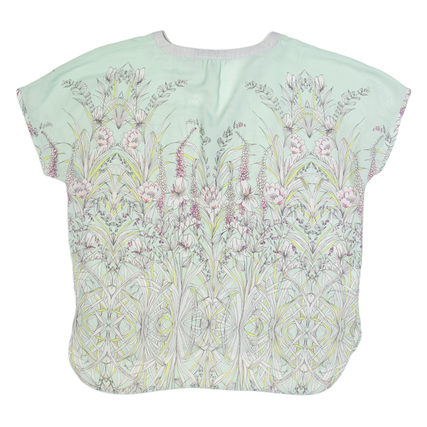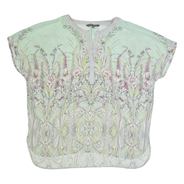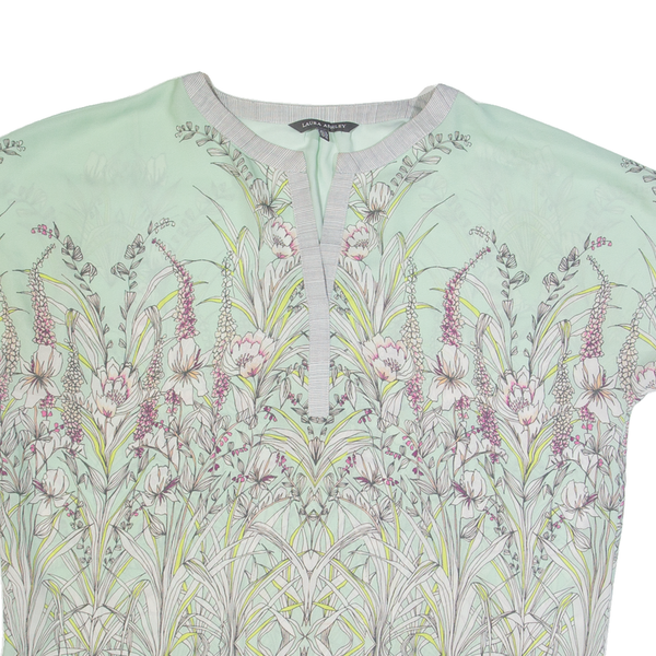 LAURA ASHLEY Womens Printed Blouse Green V-Neck Floral UK 12