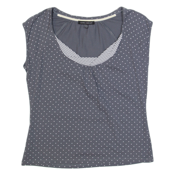 LAURA ASHLEY Womens Printed Top Grey Polka Dot UK 12