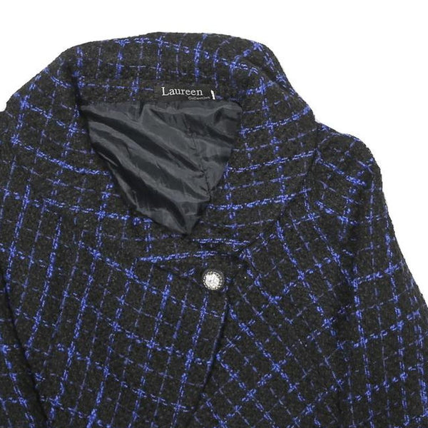 LAUREEN Womens Black & Blue Jacket UK 16 Woven Check Button Cropped Stylish