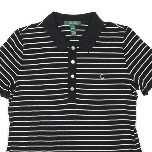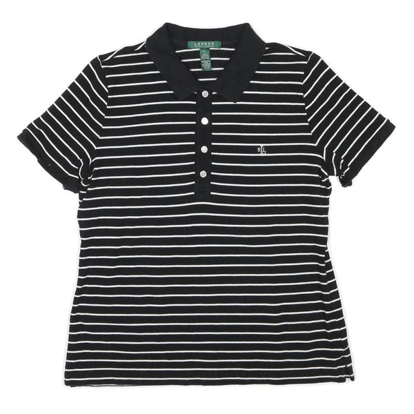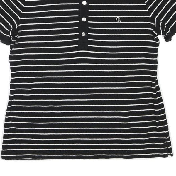 LAUREN RALPH LAUREN Mens Black & White Striped Short Sleeve Polo Shirt L Cotton